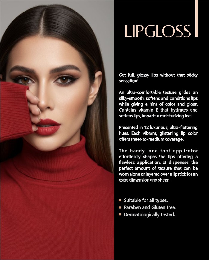 Reveal beautifully glossy lips with Aeris Lip Gloss, crafted to deliver luminous shine without the heavy or sticky feel. Its ultra-light, silky formula glides smoothly over the lips, instantly enhancing them with a soft glow and a touch of color.
